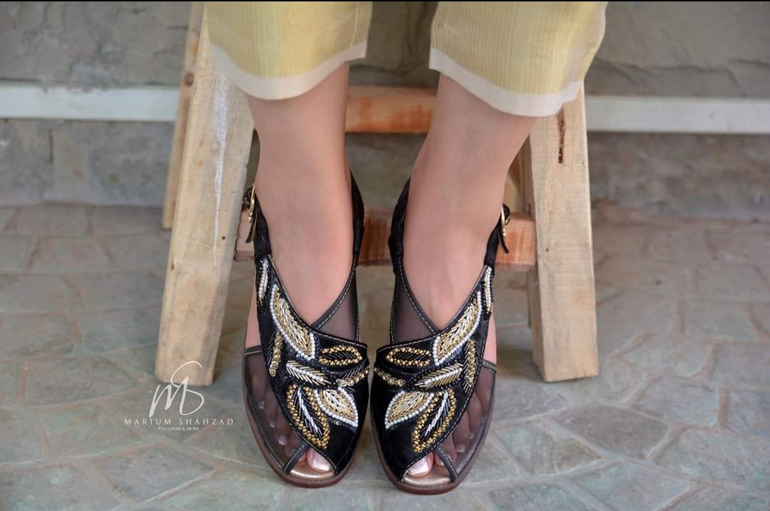 Our "Raven" peshawaris are for the quintessential modern girl in you. It is the classic combination of gold, ivory and black in form of abstract leaves. Our signature peekaboo net on one side makes them look so feminine. Its the perfect amount of glam to stir up a conversation